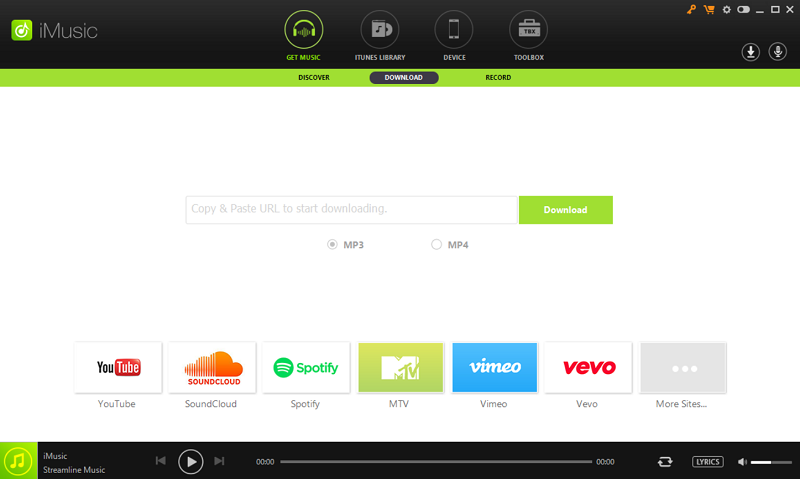 O iMusic é uma ferramenta completa de gestão musical. Permite descarregar playlists completas do Spotify para MP3 através de links. Além disso, consegue descarregar música de outros sites como Archive, Jamendo, entre outros. Melhor ainda, também funciona como ferramenta de transferência, ajudando a mover as playlists descarregadas para o seu smartphone, iTunes e até para o carro, caso atualize para a versão completa.